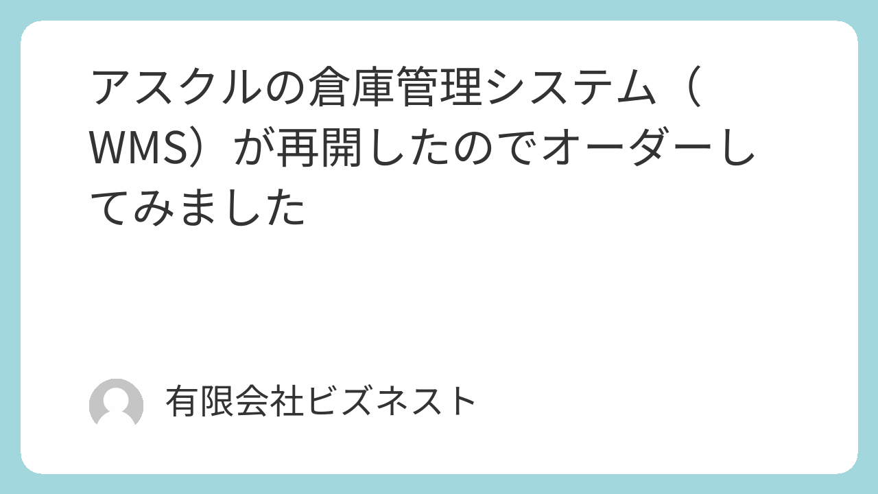 2025/12/15(18時)に倉庫管理システム(WMS)が再開しアスクル出荷商品を拡大したため、早速オーダーしてみました。