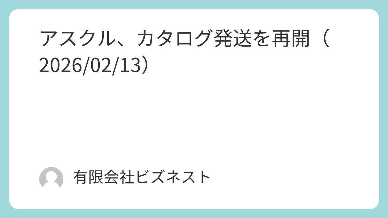 AgentSIDEランサムウェア障害でカタログの発送を停止していましたが、2026年2月13日より再開いたしました。