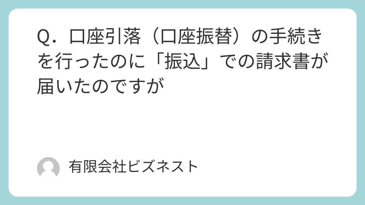 Q.口座引落(口座振替)の手続きを行ったのに「振込」での請求書が届いたのですが